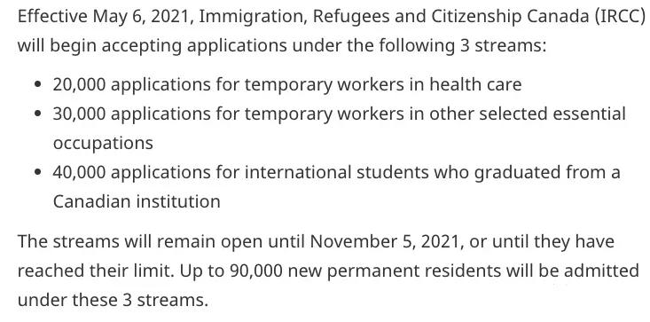 2021移民大赦 | 加拿大东部时间周四中午12点万众瞩目的9万大赦申请,正式开始!多咨处移民部提前安排客户,员工和持牌移民顾问一起在团队的配合下所有客户都顺利递交成功!不负客户们对我们的信任!2021移民大赦 | 多咨处 | 加拿大移民 | 加拿大留学生 幸福真的来得太突然了,中国农历大年初二,加拿大移民局狂送春节大礼包——2021年2月13日,加拿大联邦移民部快速通道 (express entry)移民审理系统针对加拿大联邦经验类移民 (cec)进行了最新一次筛选,将池子里的 27332人一次性全部捞起,所有申请人全部获. 原本是每两周一次的, cec定向抽分。 今天突然增加了一次。 此次抽分, 距离上次仅1周。 图源:ircc. 加拿大移民局空降9万名大赦新政详细解读 haishangchuguo 2021年4月16日 14:04:41 评论 5.5k 次浏览 昨日 加拿大移民 部颁发了3个类别的临时移民新政策,留学生、必需工人爽翻天! 大部分關注加拿大移民的人都在談論 加拿大 9萬名額移民 大赦 的話題。 加拿大時間4月14日,加拿大移民部部長馬克•門迪奇諾宣佈重要移民政策:將為9萬名加拿大工簽持有者和加拿大留學畢業生以及法語或雙語申請人提供 6個全新的移民申請項目 。